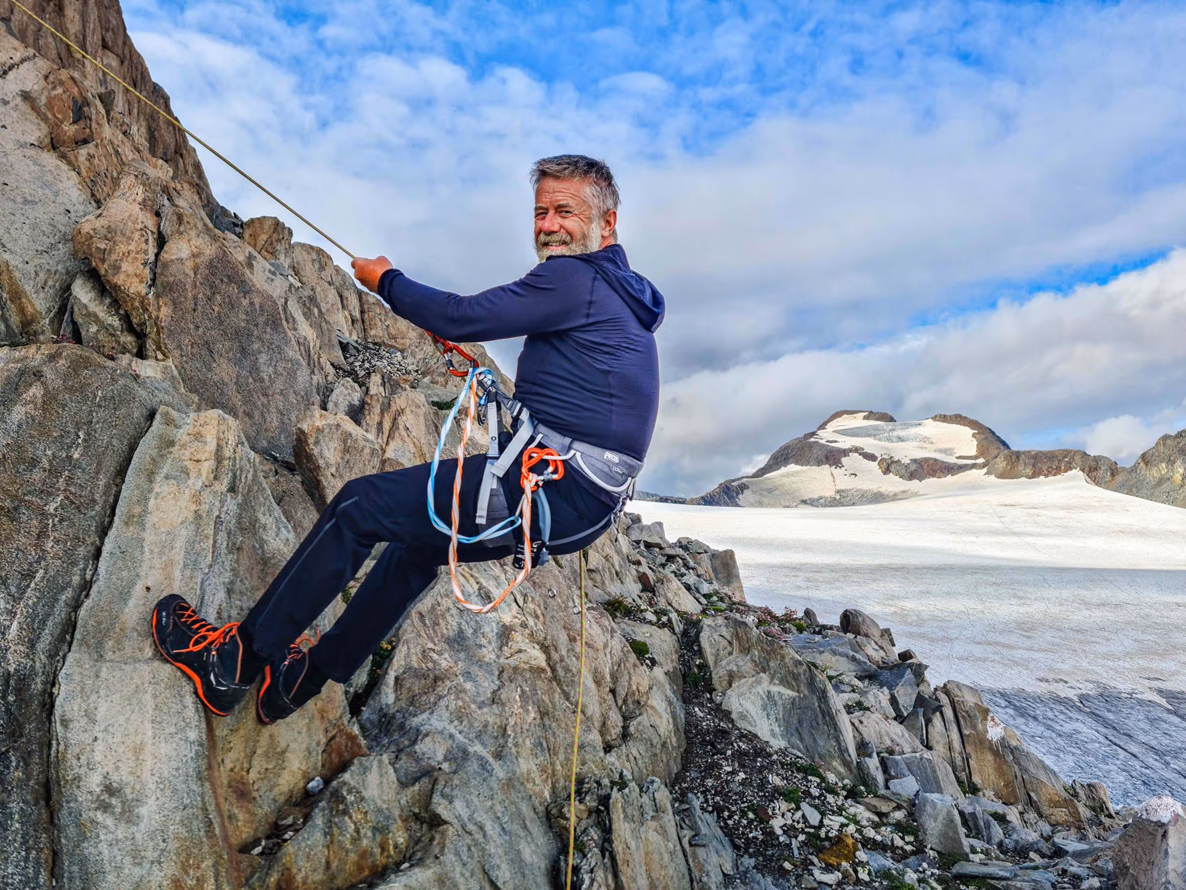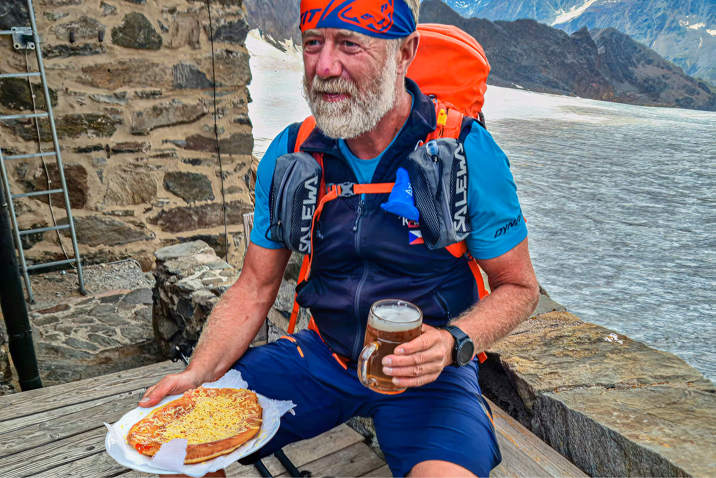 Mohl bych vyprávět, co všechno jsme tam slezli a vylezli, ale nejvíc mi utkvěla v hlavě cesta k chatě. Osm set výškových metrů, všechno na zádech – skoby, výbava, duše v nohách. Pak přišel zlom: ledovec ustoupil, chata ční vysoko na skále. „Tam už prostě nevylezu,“ opakoval jsem si.
